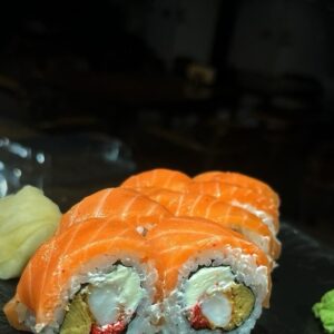 лосось,креветки,рис,крем-сир,норі,тобіко ікра.