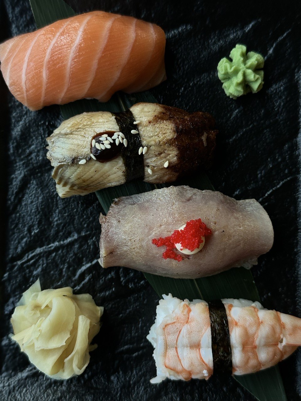 лосось,рис,авокадо,крем-сир,паніровка панко,норі,огірок,унагі,соус манго-чилі,кунжут.